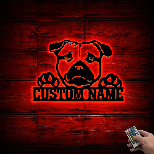 Custom American Pugabull Metal Sign with Led Lights, Dog Lover Gift, Dog Breed Sign, Dog Name Sign, Pugabull Dog Metal Sign, Metal Dog Decor